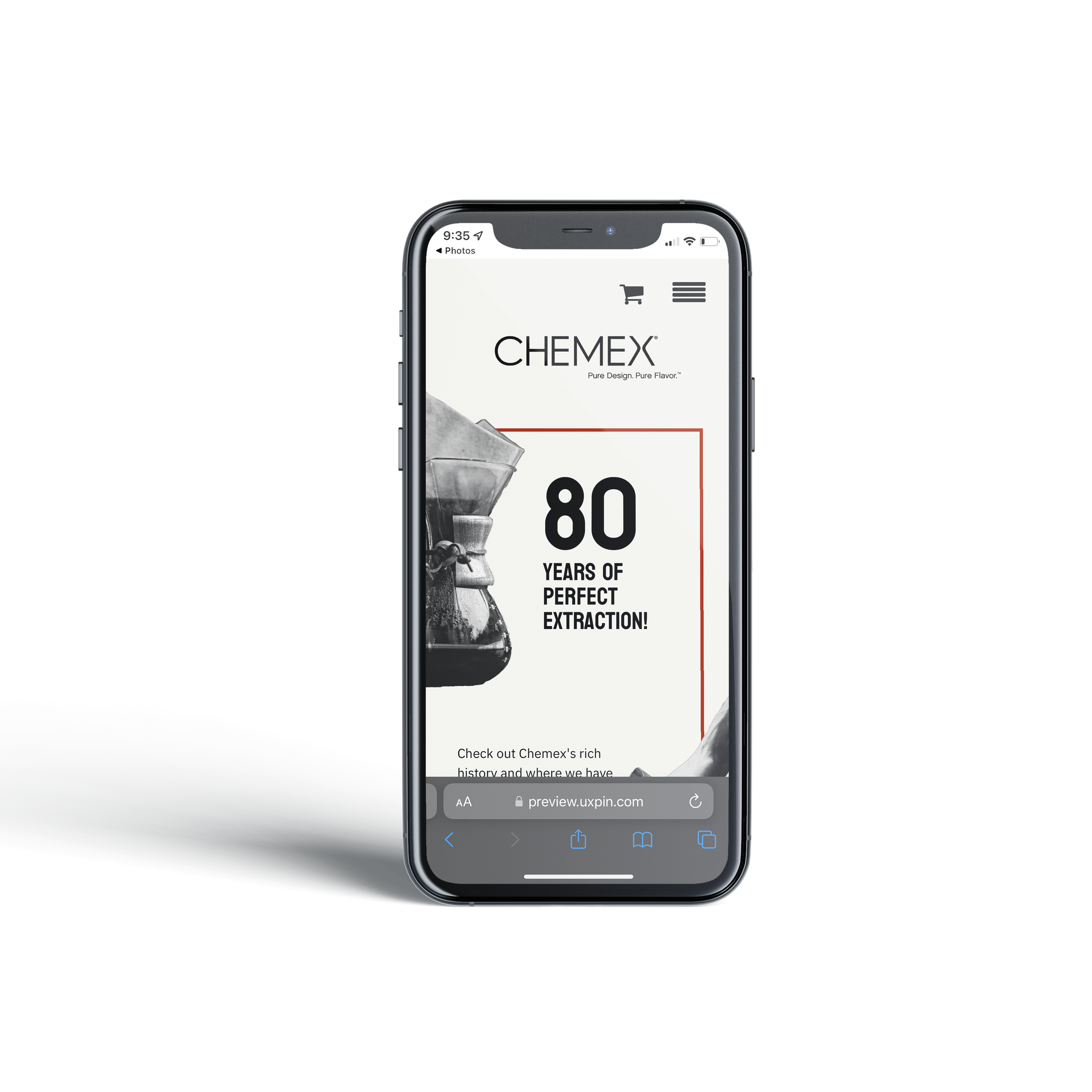 To celebrate Chemex’s 80th anniversary, I designed a mobile and desktop website in my UI class last Fall. I modernized a 50’s esthetic to create an interactive and clean design. My palette and type choices are limited and bold.